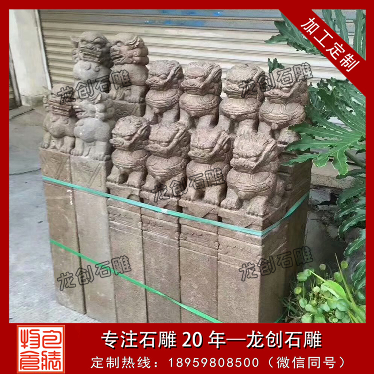 石雕拴馬樁樣式齊全、規(guī)格不一,常見(jiàn)的石雕拴馬樁都是方20cm的柱子,高度在1.5-2.0米之間,其最主要的不同便體現(xiàn)在它最上面的柱頭上。石雕拴馬樁的柱頭雕刻樣式很多,有雕刻獅子的、雕刻麒麟的還有雕刻