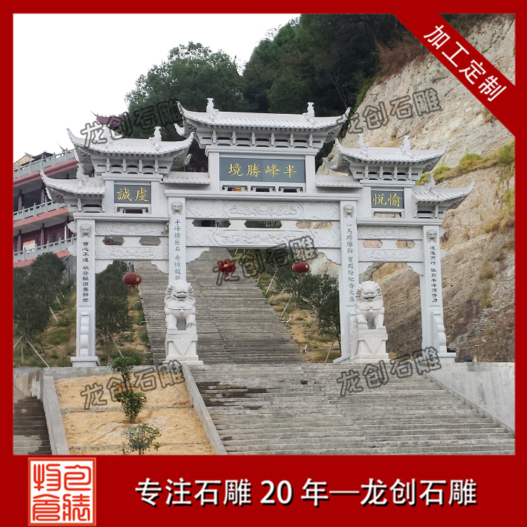 石牌樓制作所采用的原材料是決定石牌樓價格的主要因素。市面上適合雕刻石牌樓的原材料有花崗巖、青石、五蓮紅、芝麻白、芝麻灰等。一般石牌樓雕刻采用青石和花崗巖的比較多,這種石料本身質地好,而且花色紋路選擇多,加上這種石材價格比較實惠,適合在不同的場合中使用。而五蓮紅和花崗巖這兩種石材價格稍微高一些,石牌樓根據用的材料質地不同以及原材料的數量不同,石牌樓價格有很大的變化。
