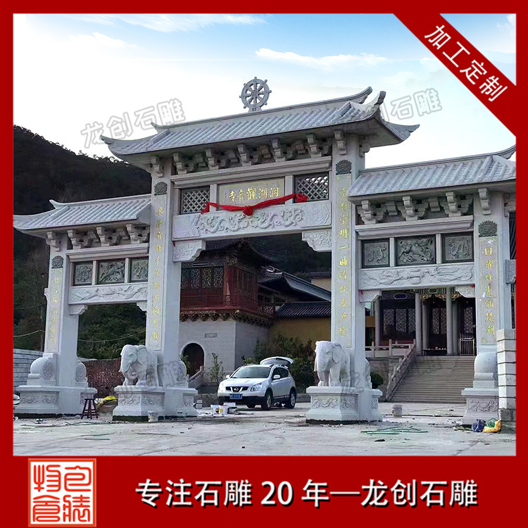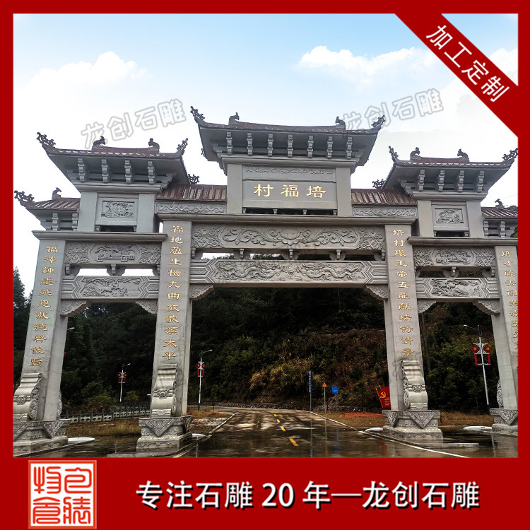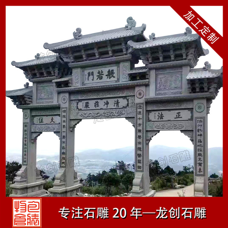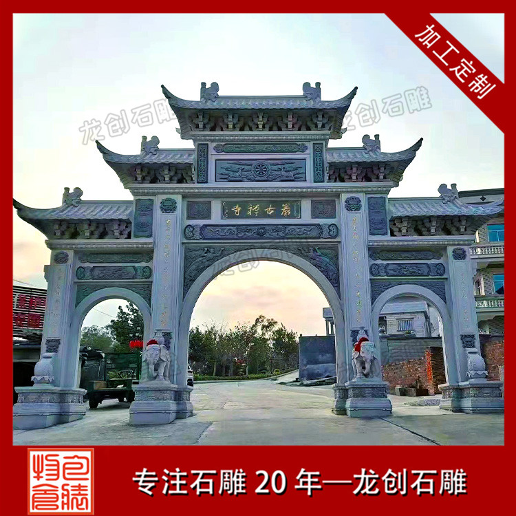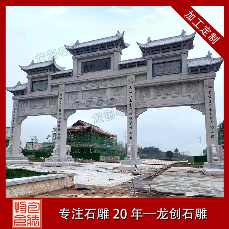 以上分享的石牌樓是中式典型的三門四柱石牌樓造型,作品結(jié)構(gòu)緊密,設(shè)計(jì)精巧,款式古樸,是古建景區(qū),宗教寺廟,村莊入口常用的景觀擺件。惠安龍創(chuàng)石雕支持定制各種樣式的石牌樓、石牌坊,專注石雕20年,匠心制作,自有礦山,價(jià)格實(shí)惠。