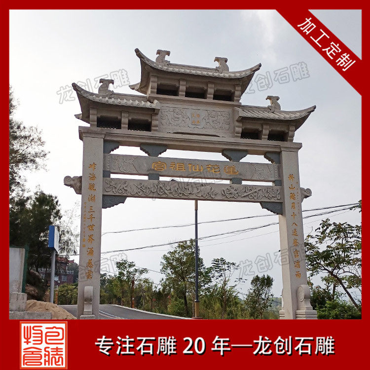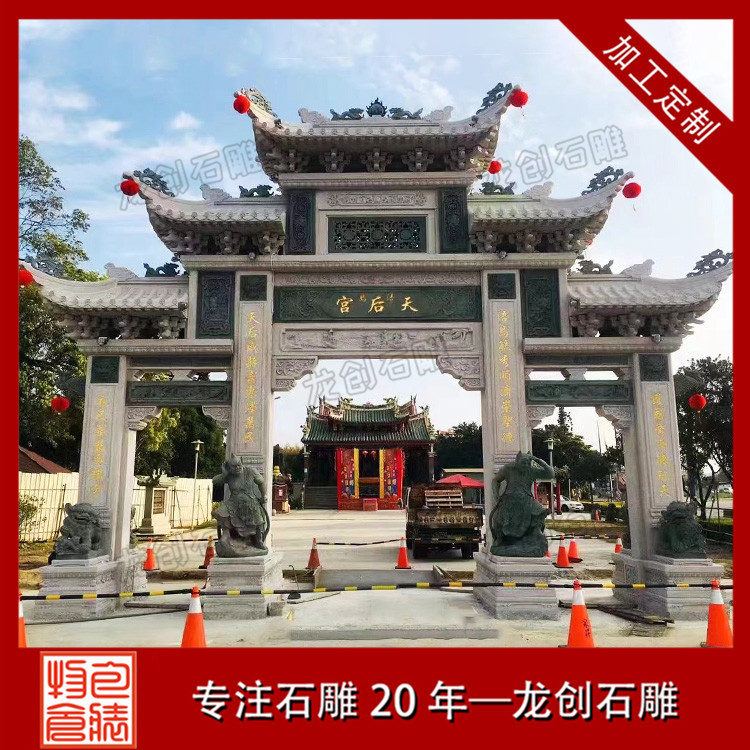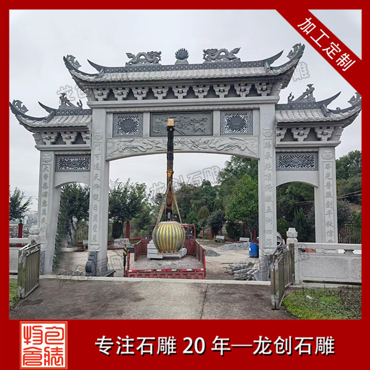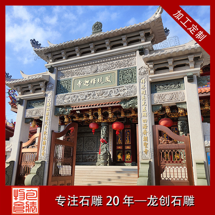 石雕山門(mén)作為寺廟的重要入口,其設(shè)計(jì)和制作都非常講究。首先,山門(mén)的造型要與寺廟的整體建筑風(fēng)格相協(xié)調(diào),既要體現(xiàn)出寺廟的莊嚴(yán)肅穆,又要彰顯出寺廟的獨(dú)特韻味。其次,石雕山門(mén)的雕刻工藝要求非常高,既要表現(xiàn)出線條的流暢美感,又要彰顯出雕刻技法的高超。最后,石雕山門(mén)的顏色也是非常重要的,通常選用深色系的石材,以突顯出寺廟的神秘色彩。