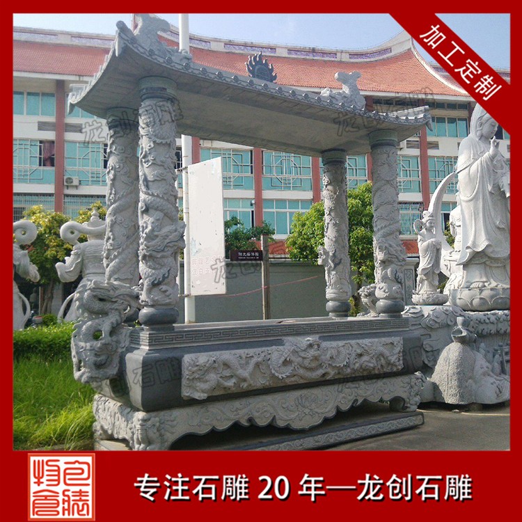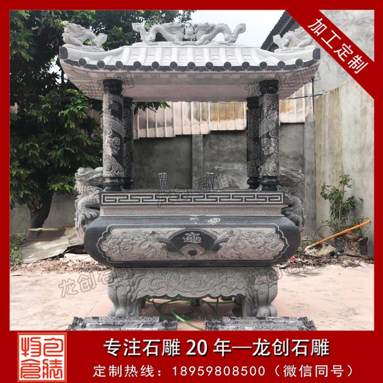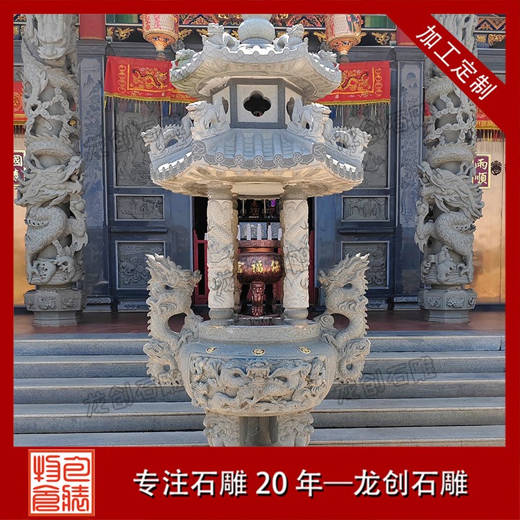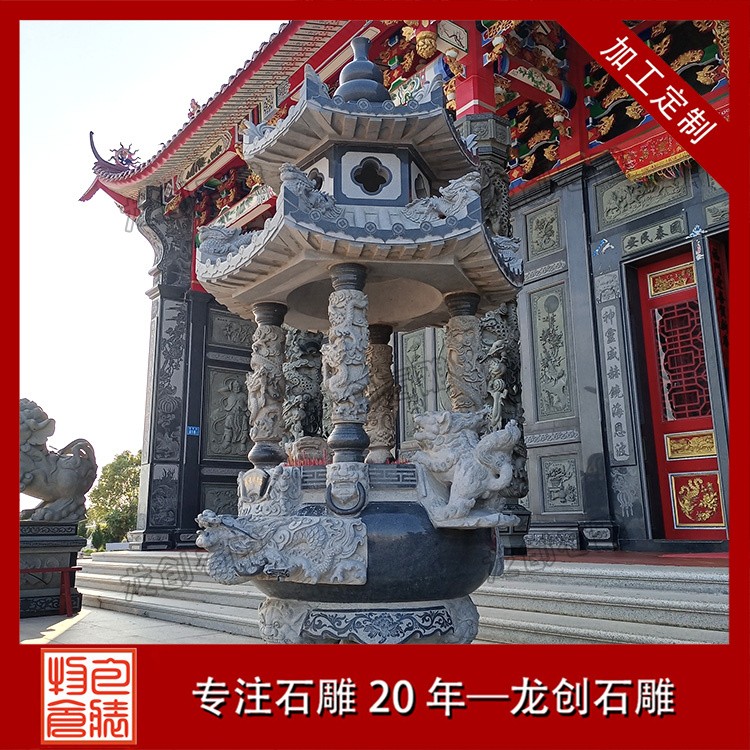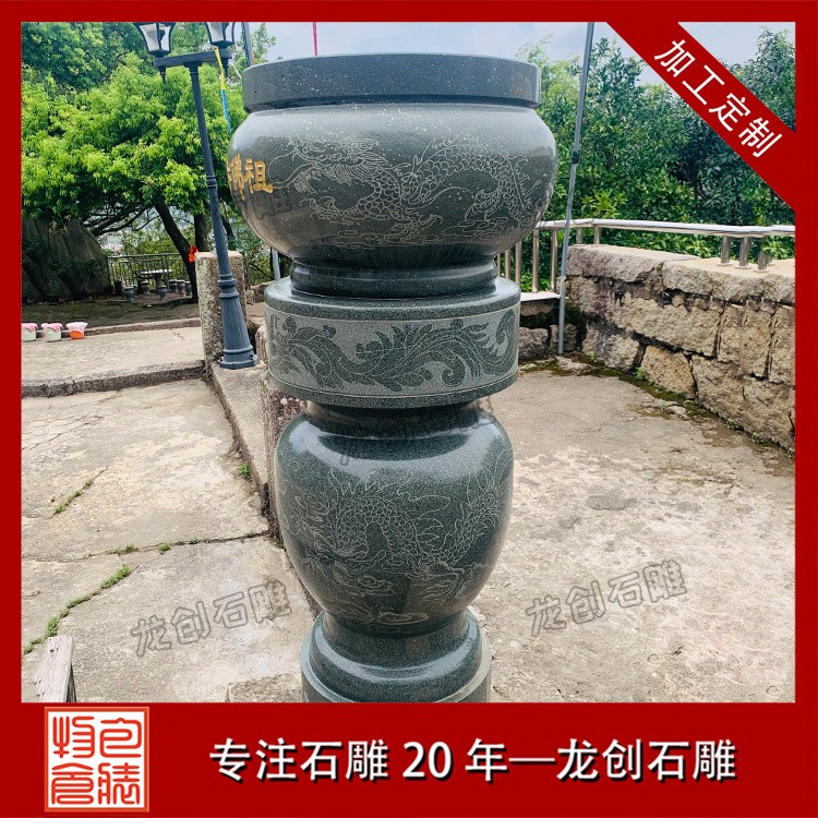 適用場景:花崗巖石雕香爐常用于大型寺廟、佛堂等場合,其堅固耐用的特性能夠經受住風吹雨打,歷久彌新。