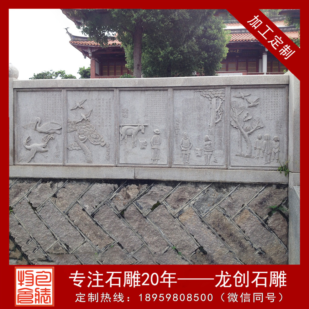 首先是肯定大型浮雕的制造計劃。計劃肯定需求依據施工現場的詳細狀況,設計出契合需求的圖紙。不是一切的文化墻都是在一個平面上的,有可能是弧面,也有可能有拐角,這些都需求在圖紙上表現,否則的話制造的浮雕板沒方法拼接成對應的外形。計劃制定過程中,也要思索裝置的便利性,石板過厚,裝置難渡過大;過薄,不好雕琢圖案。因而,制造計劃十分重要,是整個浮雕制造過程中的主心骨。