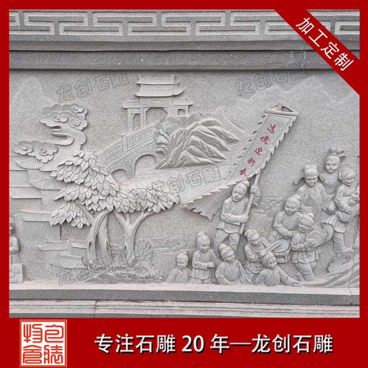 關于室外文化墻浮雕多少錢,首先要確定浮雕的圖案內容,再找到合適的廠家溝通,確定圖案的可實現性。第二步是要明確選用的石料,盡可能有實物樣品做參考,這樣的話買賣雙方都好溝通。其次就是雙方確認意向,下單安排制作了。這個過程中,買方要把所有能想到的要求提出來,廠家則根據消費者的需求,從石雕制作的專業角度給與一定的建議。