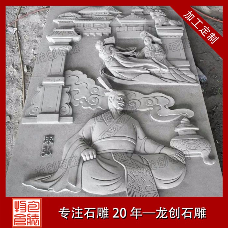 惠安縣龍創石雕工藝有限公司專業的青石人物石浮雕雕刻廠家,提供青石浮雕、花崗巖浮雕、大理石浮雕等多種天然石材浮雕加工制作,人物、佛像、花草鳥獸等各種圖案皆可定制。公司常年承接寺廟浮雕、祠堂浮雕、建筑迎門墻、景區戶外大型建筑外墻石材浮雕加工制作。
