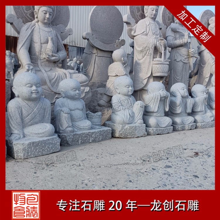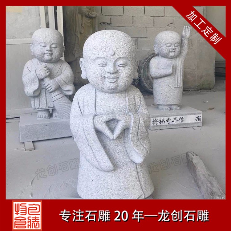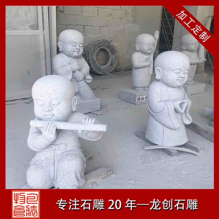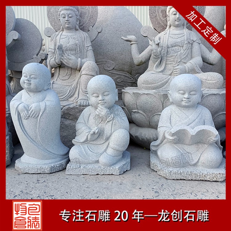 石雕小沙彌佛像雕塑就是年齡很小的小和尚,這種年齡石雕在制作上是十分的有趣可愛的。石雕小沙彌人物他的年齡是比較小的,所以很多時候他們所做出來的動作、所做出來的事情,都是非常有特點的地方,也是完全顯露出他們年齡的地方。