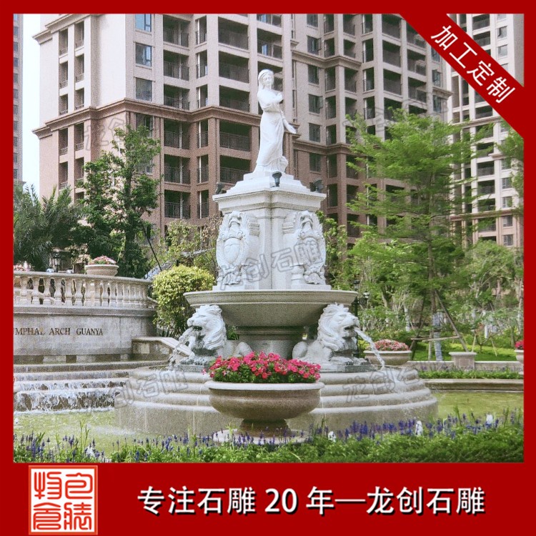 園林景觀石雕噴泉水缽雕塑是一種石材做成的盆狀或者罐狀的石雕作品,一般來說周邊有雕刻的紋路以及雕刻的附加飾品,然后組合成一個比較大的裝水,儲水的容器,并且部分石雕噴泉雕塑利用水壓把水從石雕噴泉雕塑的上端噴或者流出,形成一種特別的景象的石雕產(chǎn)品。石雕噴泉雕塑作為一種裝飾產(chǎn)品,所以一般適用于比較高檔的裝飾,不過隨著社會的發(fā)展,現(xiàn)在的水平高中低檔的價格可以滿足不同客戶的需求,從高端裝飾慢慢的成為了家居擺件,公司擺件,公園擺件,景區(qū)擺件等等。
