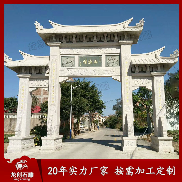 村口石雕大門設計制作作為一個村子的門面,一般雕刻圖案都是以吉祥寓意為主的浮雕內容,而村口石雕大門的建筑構件在傳統建筑中表現出的功能屬性建筑構件的作用不僅有物質功能,同時還具有精神功能。物質功能體現的是建筑的結構作用,精神功能體現的是村口牌坊大門建筑的人文內涵,物質功能人們創造建筑,牡丹在于改善自身的生存狀態。