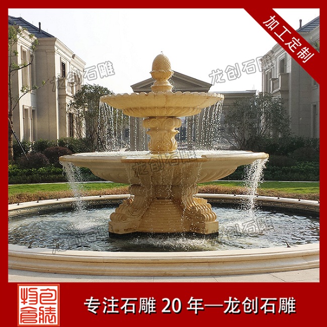 石雕噴泉是用石雕雕塑的外形,搭配上噴泉水,將裝飾的效果提高了不少。石雕噴泉分為:動物石雕噴泉、人物石雕噴泉、歐式石雕噴泉、中式石雕噴泉等等,可以根據具體的需要定制大小不同的石雕噴泉。雕刻與噴泉相結合,能夠更好的起到裝飾的效果,單獨的噴泉難免顯得有些單一,搭配上精致的石雕雕塑就會顯得相得益彰。
