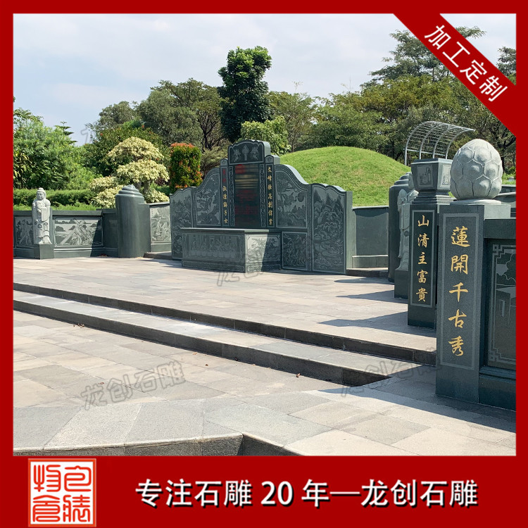 公墓石雕墓套墓圍設計的各個組件都是分開加工的,這是因為傳統墓碑的組成結構復雜,包括碑頂、主碑、碑柱、蓋板、底座、欄桿、臺階等許多不同的部分,導致墓碑的需要分為更多的部分處理,zui后還要保證每部分的加工制作順利完成,才能合成一個完整的傳統公墓墓套墓圍,這無形地增加了墓碑生產過程的復雜性。