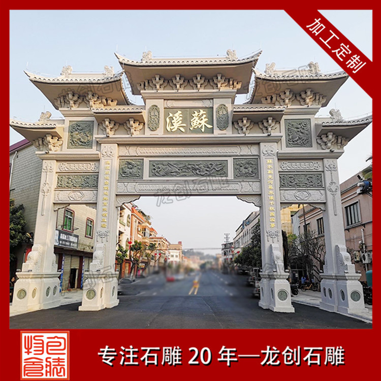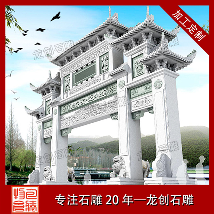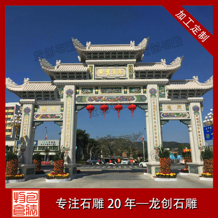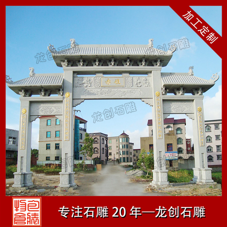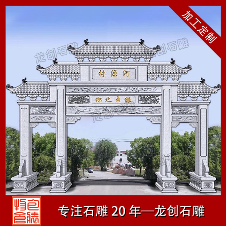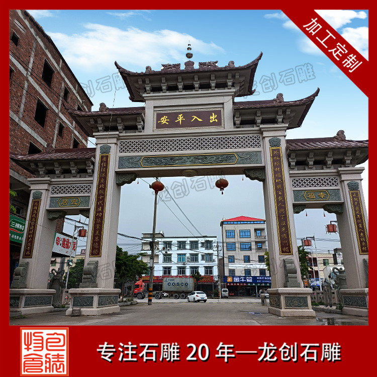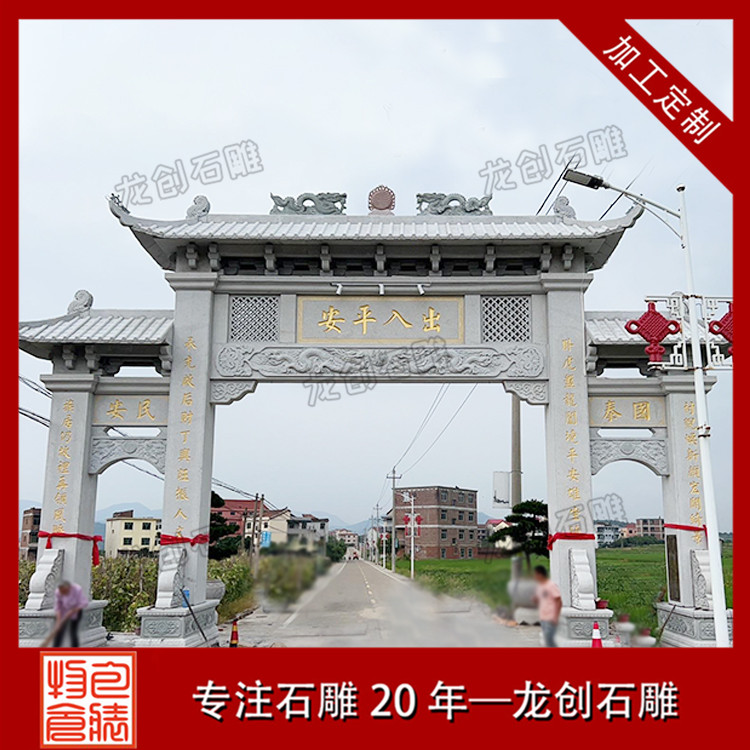 雕刻精美好看的中式景觀村口石牌樓,作為鄉(xiāng)村傳統(tǒng)文化中重要的組成部分,具有鮮明的地域性和文化性,對形成村莊格局和豐富鄉(xiāng)村空間形態(tài),都產(chǎn)生了非常重要的影響。新村石牌坊、村口石牌樓是農(nóng)村社會傳統(tǒng)文化的物質載體,記錄了農(nóng)村地區(qū)的重要事件,同時也反映了新時期農(nóng)民的思想道德觀念,以及對美好生活的期盼,也代表著新農(nóng)村新形象。