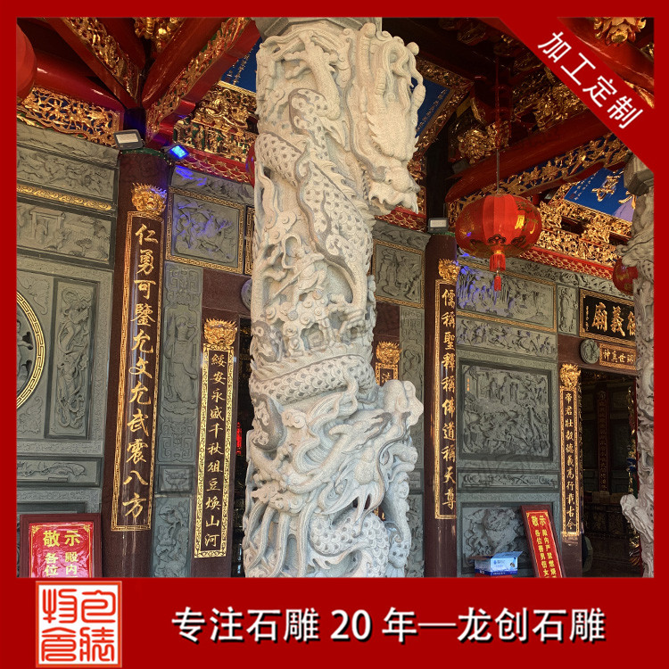 福建是著名的石雕之鄉(xiāng),歷史上有著悠久的石雕傳統(tǒng)。在福建石雕中,盤龍柱是一種常見的石雕藝術(shù)品。這種石雕龍柱設(shè)計的靈感來自于中國傳統(tǒng)的神話傳說中的盤龍,通常由雕刻家得到創(chuàng)意并且花費大量時間制作。