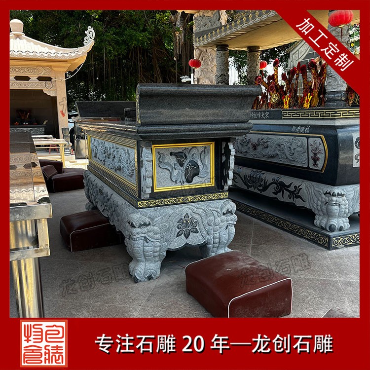 我廠專注石雕工藝多年,提供各類定制化供桌產品,選用優質花崗巖、青石等天然石材,結合傳統工藝與現代雕刻技術,確保每一件作品既莊重大氣,又富文化底蘊。