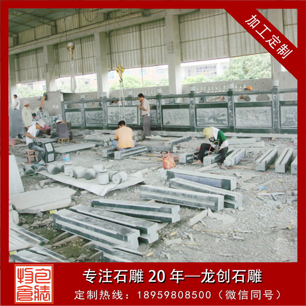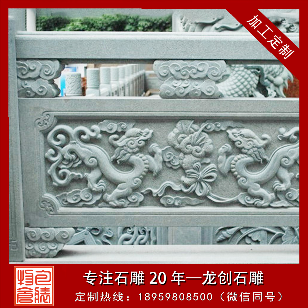 一、安全防護(hù):石雕欄桿一般有兩種類型,一種是用石頭雕刻成普通欄桿的造型,望柱加上橫梁,下面是花紋的雕飾欄板,這是比較基礎(chǔ)的款式。還有一種是把欄桿做成各種弧形,圓形,方形的墻體結(jié)構(gòu),然后在這樣的墻面上加工出各種圖案。當(dāng)然這兩種類型的用途都是在展示了石雕藝術(shù)的美感外同時(shí)兼顧了石雕欄桿安全防護(hù)的作用。