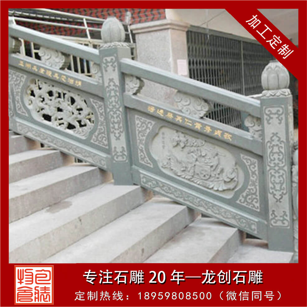 石頭欄桿一般出現(xiàn)在古建筑大殿周圍、橋面、路面上,起到保護行人安全外,石頭欄桿還可裝飾環(huán)境,又能豐富人們的活,陶冶人的情操,給人以美的享受。石頭欄桿、石頭欄桿的構成石頭欄桿有柱頭、立柱、扶手、花托、欄板、地鋪幾部分組成。透空的帶花格或圖案的實心欄桿,也有實心的欄板局部透空或全部不透空的欄桿。