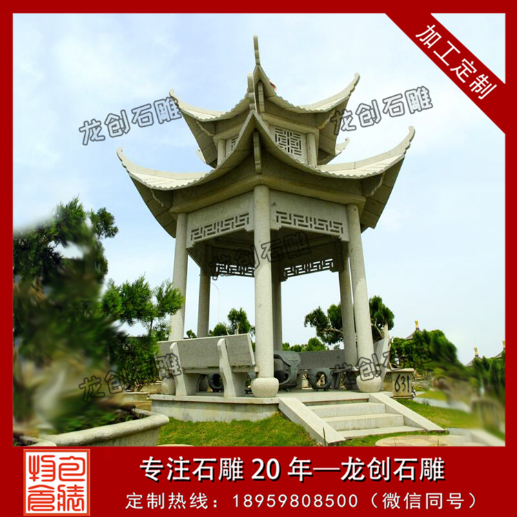 石雕涼亭使人自小室內空間,進到大容量,追求完美一種物我相融的人生境界,進而引起大家對人生的體會和理解,超過身有一定的感,心有一定的悟。石亭的美,不僅是其造型設計的美,也是一種文化藝術詩意的美。