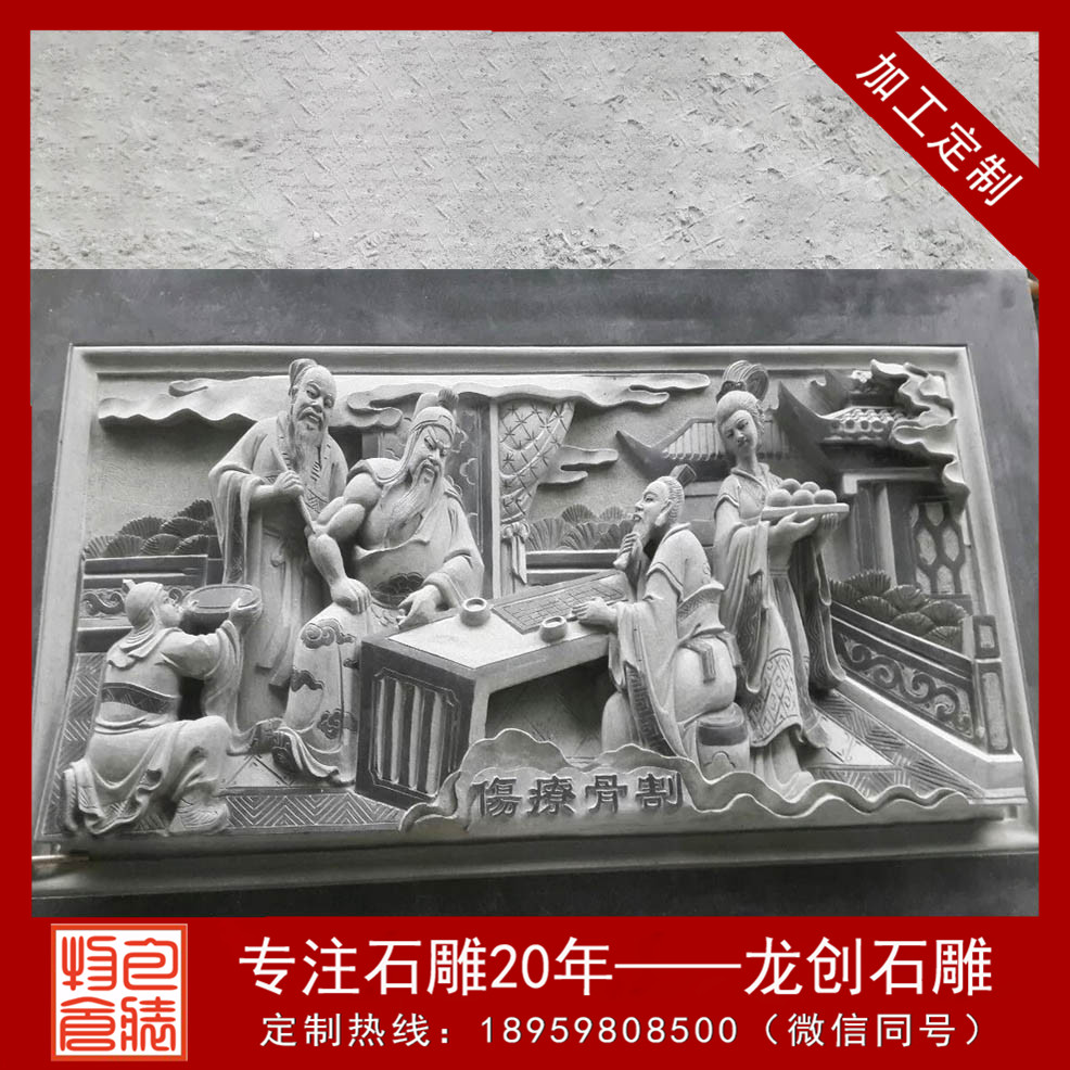 石雕浮雕壁畫(huà)在寺廟宗祠中占了越來(lái)越重要的地位。寺廟外墻浮雕在內(nèi)容、形式和材質(zhì)上與圓雕一樣豐富多彩。外墻浮雕常見(jiàn)的材料有青石、花崗巖、白麻、芝麻黑、羅源青、古田青等等。室內(nèi)浮雕多半用于大幅面的背景墻面,很多設(shè)計(jì)師利用浮雕的立體視覺(jué)效果,展現(xiàn)了很強(qiáng)的動(dòng)感和張力。