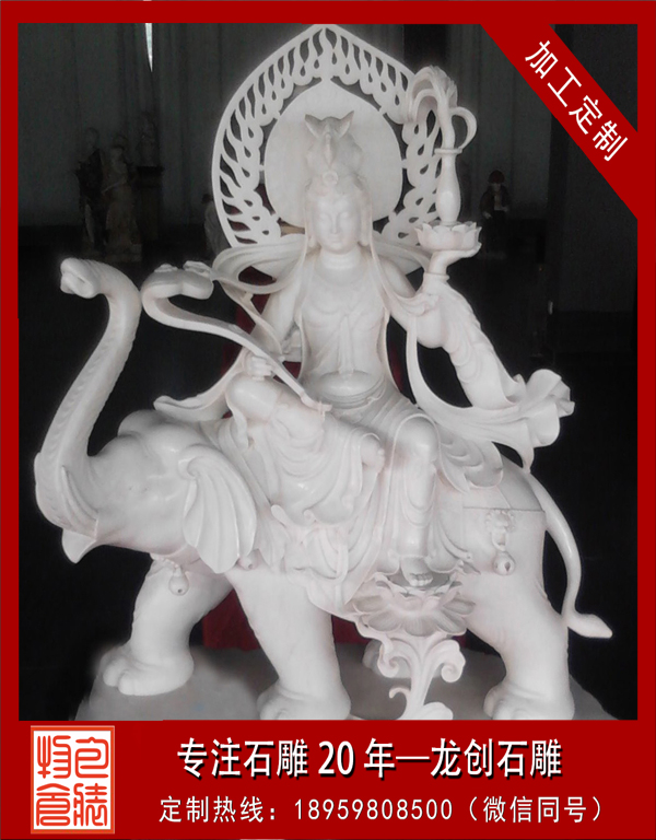 普賢菩薩,世稱為十大愿王,《法華經》指出:只要能虔誠信奉,普賢菩薩將與諸大菩薩一起出現守護此人,使他身心安穩,不受一切煩惱魔障之侵?!镀召t延命經記》指出:普賢菩薩具有延命益壽之不可思議的力量。普賢菩薩是理德和大行愿的象征,象征真理。他以智導行,以行證智,解行并進,完成求佛者的志愿,所以又稱“大行普賢菩薩”。