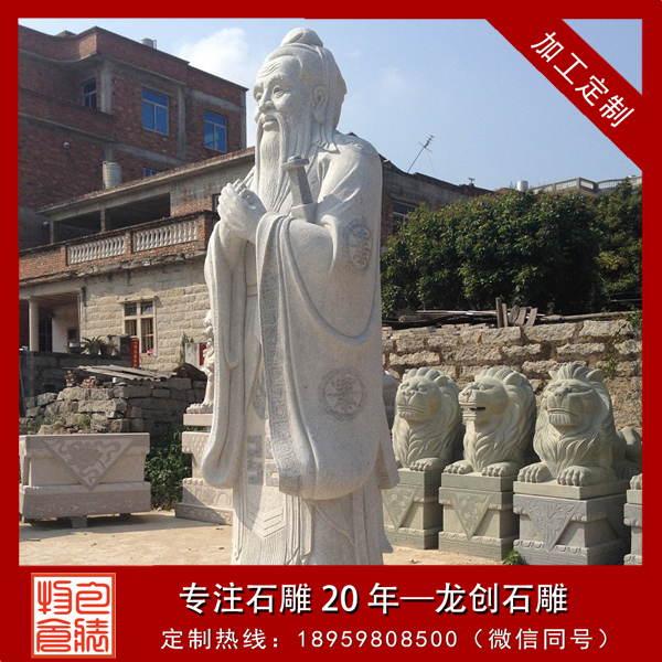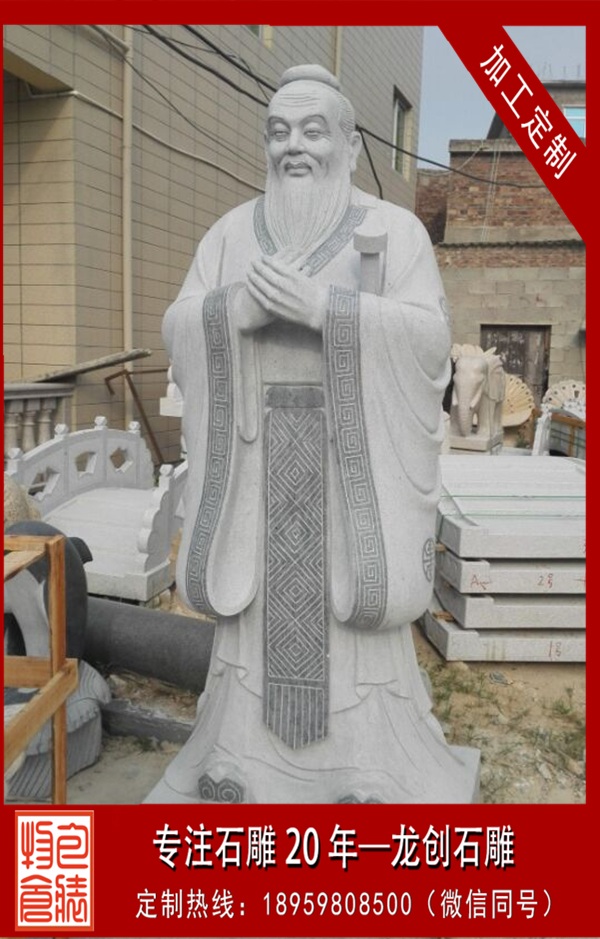 石雕孔子像是指用天青墨玉、霞玉、緬甸玉、漢白玉、墨玉、佘太玉、砂巖、大理石、花崗石、銀灰白石、雪花白等石材玉料雕刻的孔子像。石雕孔子就是孔子雕像,又名石雕孔子行教像,孔子標(biāo)準雕像。