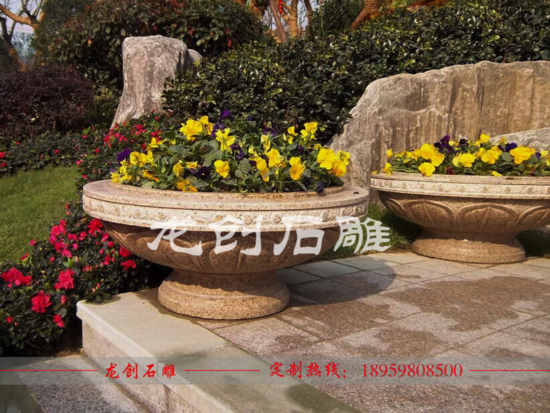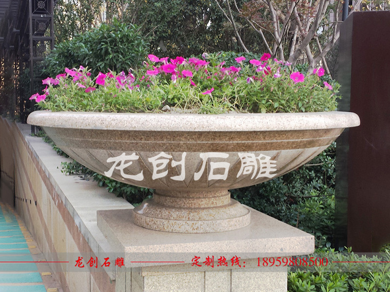 花缽制作材料可以是花崗巖,砂巖,大理石,芝麻白,等。花缽美麗的色澤還能保存百年以上,顏色美觀,格調(diào)高雅,花色繁多,剛性好,溫度變形小,保養(yǎng)方便簡單,使用壽命很長。