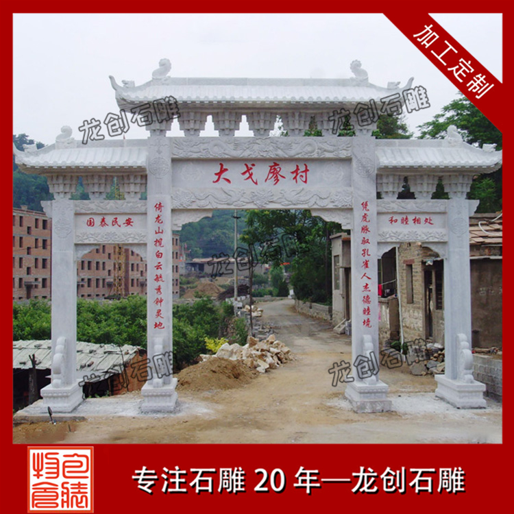 石牌樓是我國(guó)建筑中的藝術(shù)代表,集中展示了我國(guó)雕刻文化,也能夠探索到不同歷史時(shí)期的故事。石牌樓如今建造應(yīng)用多,尤其在新農(nóng)村村口石牌樓設(shè)計(jì)制作及選購(gòu)中,因?yàn)樾藿ㄊ茦鞘菫榱苏蔑@新農(nóng)村面貌,不少新農(nóng)村建設(shè)也都會(huì)作為重點(diǎn)設(shè)計(jì)考慮。那么新農(nóng)村村口石牌樓設(shè)計(jì)制作及選購(gòu)有哪些注意事項(xiàng)? 下面由村口石牌樓廠家,龍創(chuàng)石雕為大家介紹。