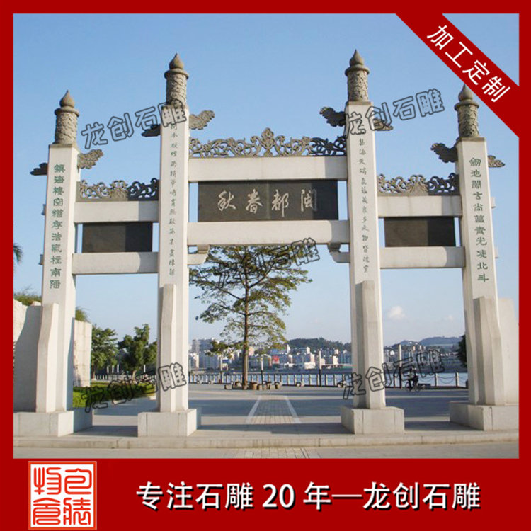 關于修建一座石牌坊要多少錢?什么價格都有,價格七八萬的有單門牌坊,十來萬的有一般的村口石牌樓,還有三十多萬的豪華石牌樓,石頭牌坊報價主要和圖片樣式、尺寸大小、石材、雕刻工藝有主要關系。